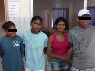 Amanda Caldas Viana, 20 anos, com seu parceiro Lauriney Santos da Mota, 19 anos com o casal de menores B.R.S.A. 13 anos e E.J.S.G. 16 anos